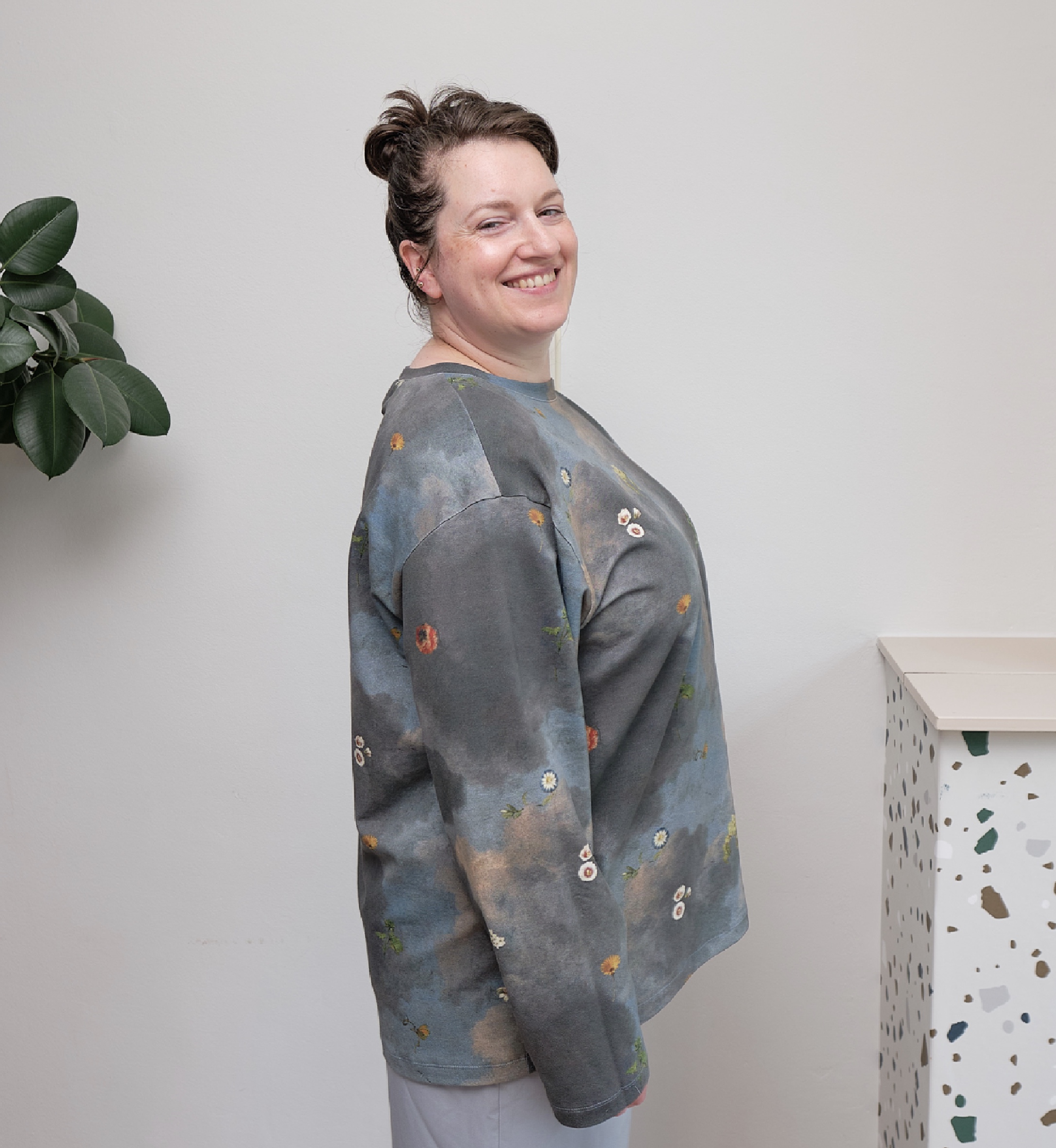 Het t-shirt is een oversized model. Voor de ontwerp van de stof zijn schilderijen gebruikt uit het archief van het Rijksmuseum.